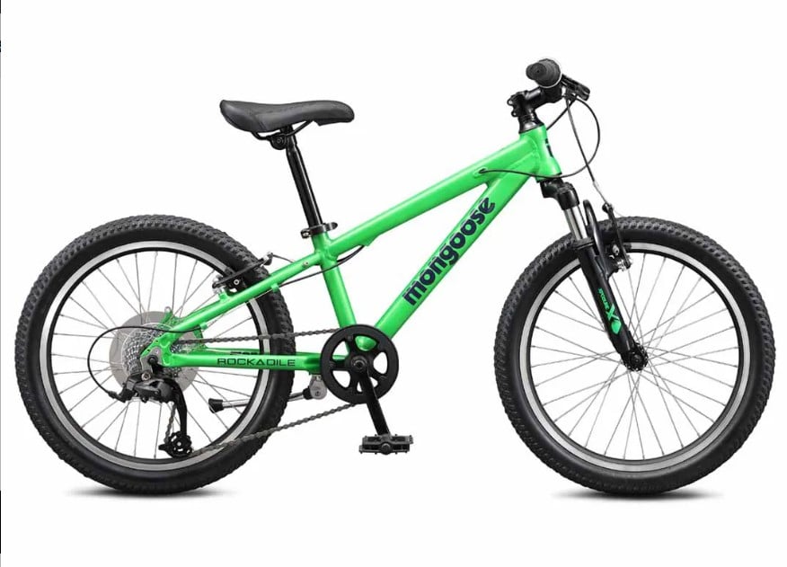 The Mongoose mountain tyres offer superior traction on any terrain and are a great mix of speed and grip so that young ones can ride with both confidence and a bit of speed. While the aluminium double wall rims are strong and responsive to keep you rolling for hours on end. When you need to stop, the aluminium linear pull brakes provide reliable stopping power every time. This really is a fun entry level bike that has all the spec needed for safe, and reliable fun out and about.