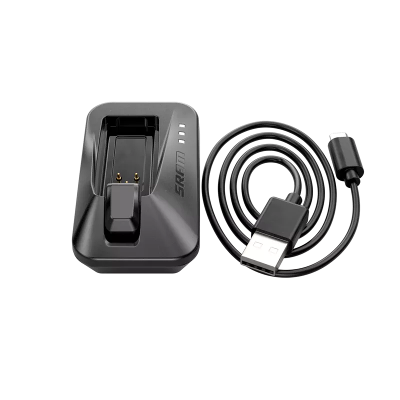 SRAM batteries are literally a snap to remove and charge. Just flip the tool-free battery latch up and slide the battery up and out of the derailleur. Then snap the battery into the USB powered charger and connect the charger to any USB power source or A/C USB adaptor. A full charge takes up to 60 minutes to complete.