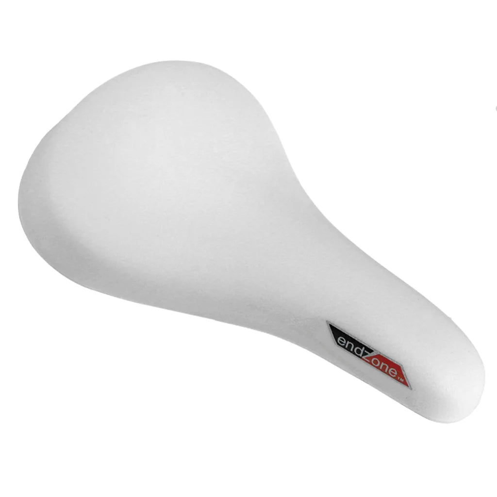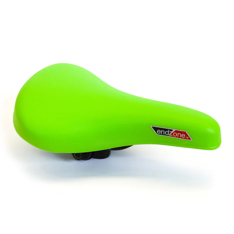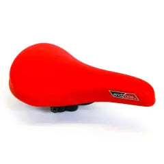 Kids vinyl BMX style saddle suitable for 16 - 20" bikes. Includes adjustable angle bracket. Features a flat saddle back with anatomic support, recessed nose for comfort in sensitive areas and sculpted comfort foam that eliminates unnecessary bulk and creates a narrow saddle centre which allows unencumbered leg movement.
