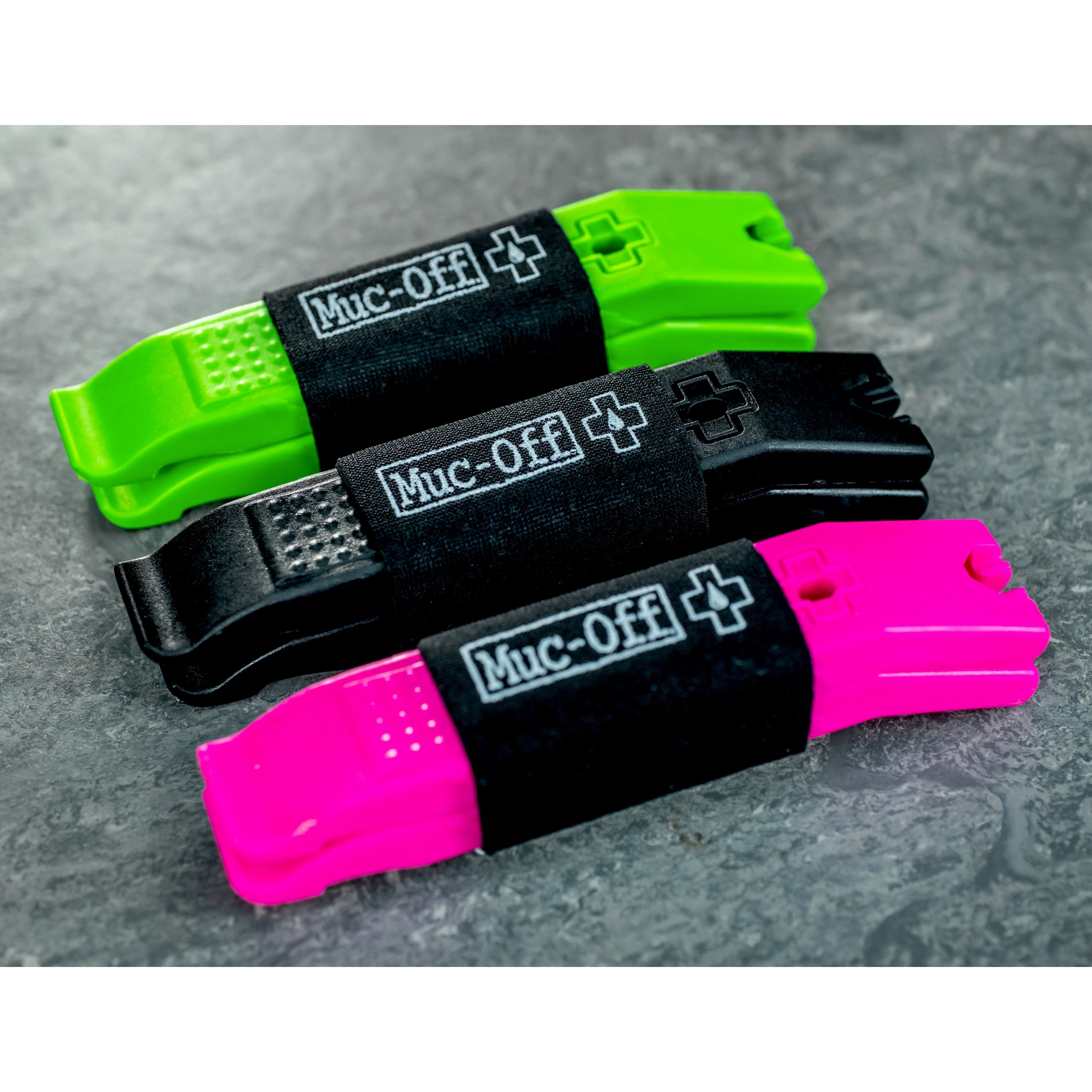 We all need maximum leverage, right? Muc-Off Rim Stix are the perfect tool for quick, safe and easy tyre removal with no danger of damaging rims or pinching tubes, even with the hardest to remove tyres! Constructed from high-strength materials to be sturdy and grippy making even the toughest of tyre removals painless with no danger of it snapping in two and leaving you stranded in the hills. The tip is engineered with the perfect scoop angle and an added recess underneath ensures fast and faff-free usage. Designed from the ground up, these tyre levers work perfectly with all tyre and rim combos - whether you’re out in the wilderness or in the workshop! Designed with an integral emergency valve core remover and rear-spoke hook making it the perfect riding partner no matter what the occasion.