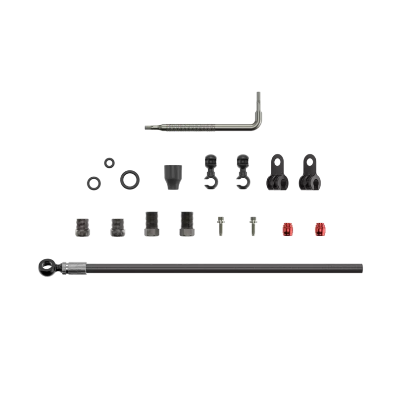 The Black Banjo Hydraulic Brake Hose Kit fits both SRAM road and mountain bike brakes that feature a black banjo fitting at the caliper. The hydraulic line kit includes all replacement parts.